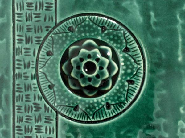 This 100% mixable celadon glaze is a deep, glossy forest green that pools and accents textured ware like the ancient glaze it is created to imitate.