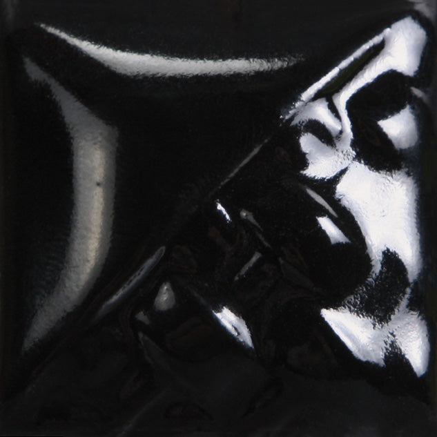 Cone 6 oxidation: Black Gloss is a highly-pigmented true black gloss glaze. The stable qualities of this glaze make it ideal for design work and full opaque coverage at mid-range temperatures. Glaze turns to satin gloss at cone 5 and high gloss at cone 6.