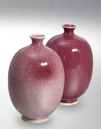 The glaze has a satin sheen, presenting a delicate and lustrous wine-red color. The higher the firing temperature, the more pronounced the speckled effect becomes.